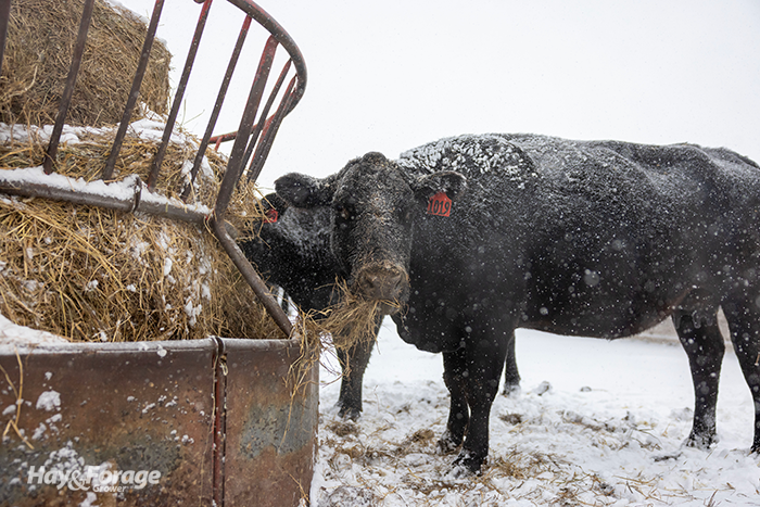 Depending on gestation or lactation stage, cows require roughly 60% total digestible nutrients (TDN) to maintain body heat without sacrificing body condition. High-quality forage offers larger concentrations of highly digestible fiber, which exits the rumen more rapidly and allows animals to eat more hay. On the other hand, low-quality hay contains less digestible fiber that slows digestion and curbs intake as cows reach rumen fill sooner.