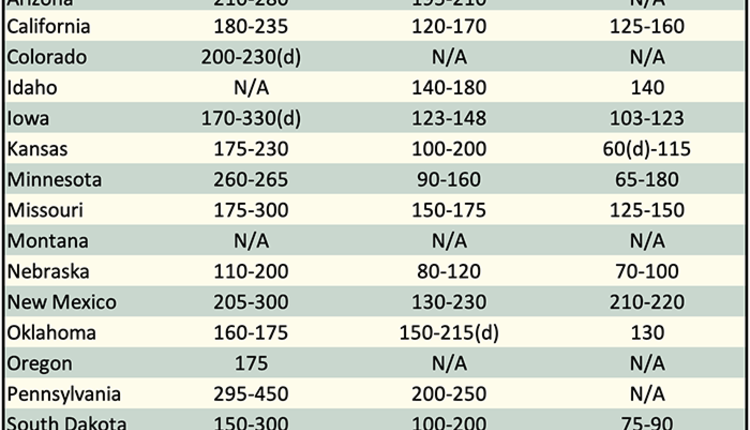 Below are examples of alfalfa and grass prices being paid FOB barn/stack (except for those noted as delivered, which are indicated by a "d" in the table below) for selected states at the end of the day on October 24. Large ranges for a particular grade and state are often indicative of location and/or bale size. Also check the USDA Hay Market Prices for additional locations and more detailed information. NOTE: Many of the state hay reports are now released on a bi-weekly basis.