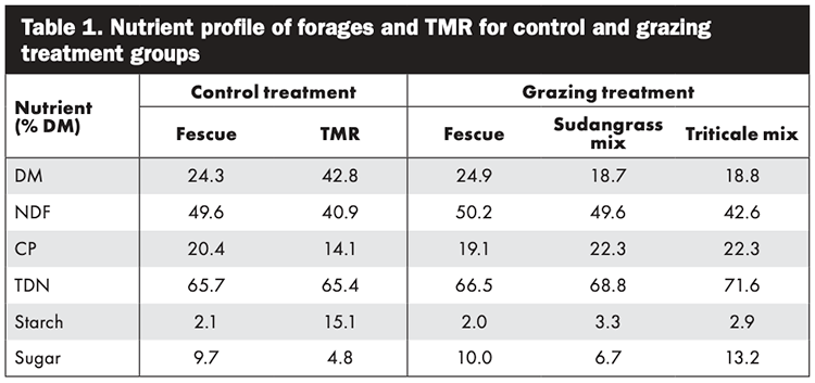 A full analysis of the results for this study is in progress, but some preliminary findings are included here. On average, heifers were enrolled in the study for 144 days, and there was no difference between treatment groups. The average nutrient composition of the TMR fed to the CON heifers and the pastures grazed by both CON and ROT heifers is shown in Table 1.