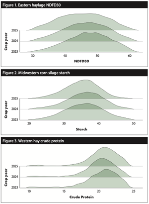 Let’s review 2025 forage production for growers in different regions across the U.S. To put this summary together, I referenced a publicly available nutrition history app from Rock River Laboratory based in Watertown, Wis. I also included graphs of key forage analysis metrics that were observed in each region compared to data from the prevous two years on the opposite page.