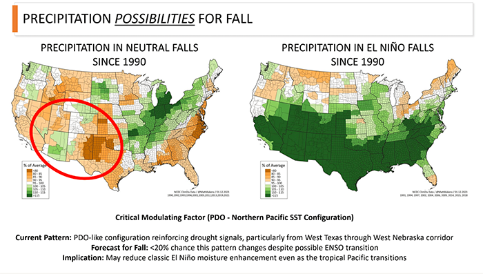 “Not all rumors are true, but there is probably a shred of truth in each.” That was Matt Makens’s first comment as he took the stage at the National Cattlemen’s Beef Association’s annual convention last week in Nashville, Tenn. Rumor has it that El Niño is coming back in 2026; however, several things need to fall into place before the warmer, wetter weather pattern officially sets in.