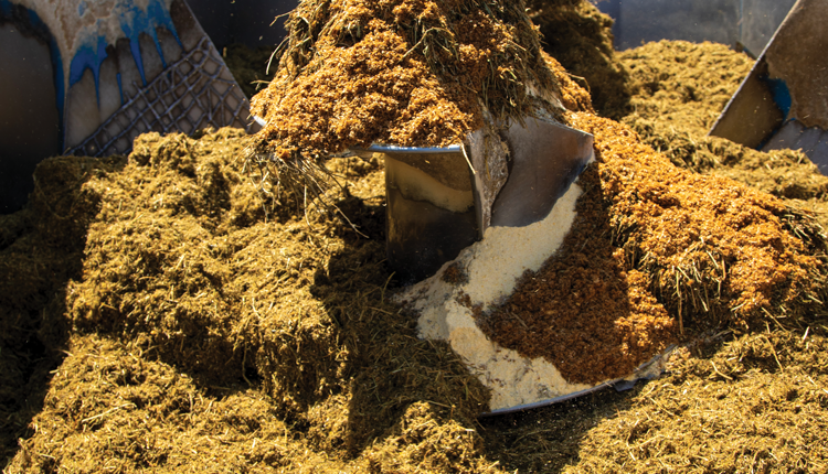 Feed mixing is also critical when adding molasses to the ration. Add liquids early in the mixing process and distribute them evenly across the ration rather than being applied in a single location. Avoid dropping liquid feeds directly onto mixer screws, and routinely check the mixer walls for buildup to ensure uniform incorporation.