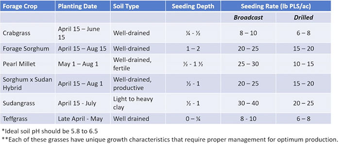 Lemus noted that farmers should not rely solely on summer annuals as a forage source but to use them as a management tool. This caution results from a greater risk of stand failure, limited growth during droughts, and thoughtful consideration of your current forage stands.