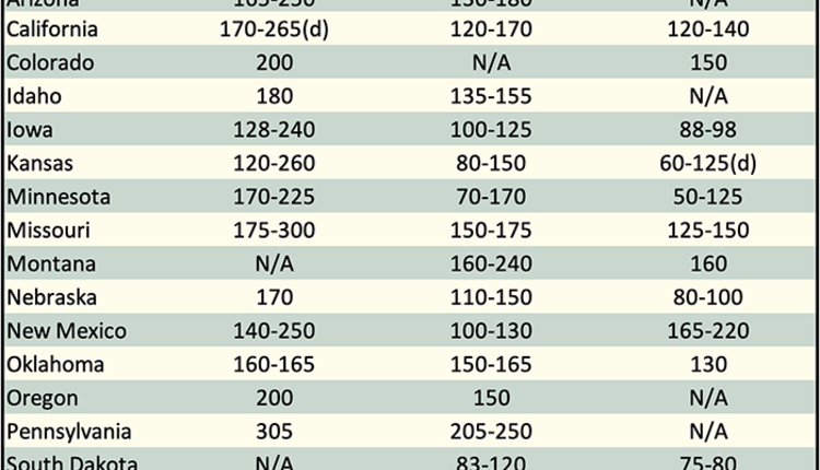 Below are examples of alfalfa and grass prices being paid FOB barn/stack (except for those noted as delivered, which are indicated by a "d" in the table below) for selected states at the end of the day on August 15. Large ranges for a particular grade and state are often indicative of location and/or bale size. Also check the USDA Hay Market Prices for additional locations and more detailed information. NOTE: Many of the state hay reports are now released on a bi-weekly basis.