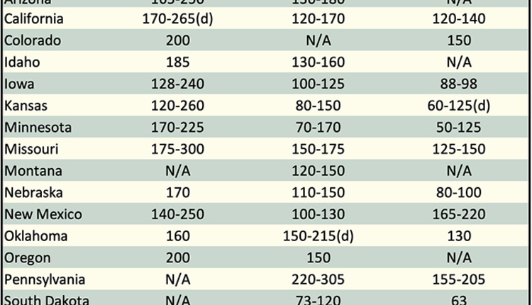 Below are examples of alfalfa and grass prices being paid FOB barn/stack (except for those noted as delivered, which are indicated by a "d" in the table below) for selected states at the end of the day on August 22. Large ranges for a particular grade and state are often indicative of location and/or bale size. Also check the USDA Hay Market Prices for additional locations and more detailed information. NOTE: Many of the state hay reports are now released on a bi-weekly basis.