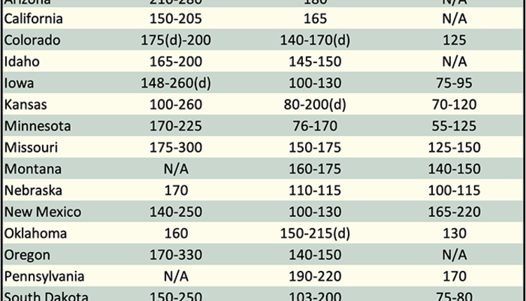 Below are examples of alfalfa and grass prices being paid FOB barn/stack (except for those noted as delivered, which are indicated by a "d" in the table below) for selected states at the end of the day on September 5. Large ranges for a particular grade and state are often indicative of location and/or bale size. Also check the USDA Hay Market Prices for additional locations and more detailed information. NOTE: Many of the state hay reports are now released on a bi-weekly basis.