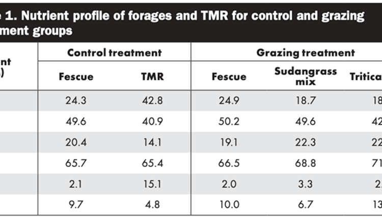 A full analysis of the results for this study is in progress, but some preliminary findings are included here. On average, heifers were enrolled in the study for 144 days, and there was no difference between treatment groups. The average nutrient composition of the TMR fed to the CON heifers and the pastures grazed by both CON and ROT heifers is shown in Table 1.
