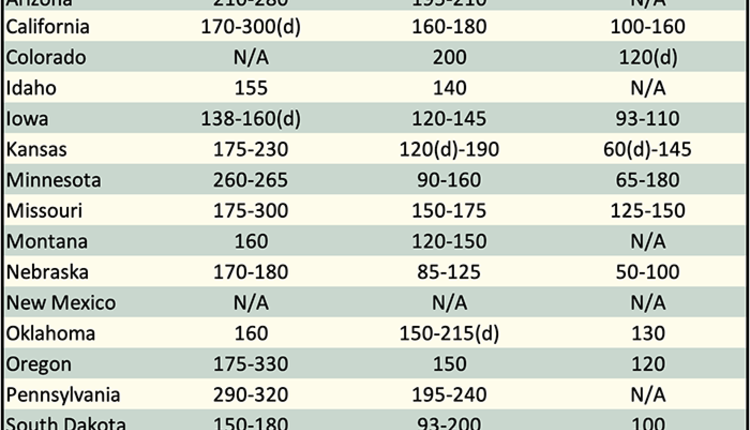Below are examples of alfalfa and grass prices being paid FOB barn/stack (except for those noted as delivered, which are indicated by a "d" in the table below) for selected states at the end of the day on November 14. Large ranges for a particular grade and state are often indicative of location and/or bale size. Also check the USDA Hay Market Prices for additional locations and more detailed information. NOTE: Many of the state hay reports are now released on a bi-weekly basis.